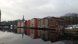 Trondheim to 3. pod względem liczby mieszkańców miasto Norwegii (190 464 mieszkańców, dane z 2017). Zwiedzanie zainicjowałem od spaceru po śródmiejskich ulicach, wzdłuż których ciągnął się wspaniałe, drewniane zabudowania. Na szczególną uwagę zasługują: monumentalna, bogato zdobiona, gotycka Katedra Nidaros (nor. Nidarosdomen), królewska rezydencja Stiftsgården,